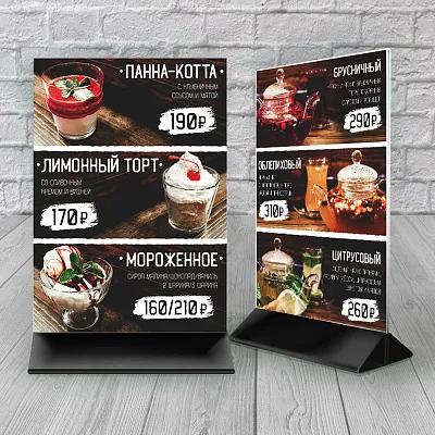 Срок изготовления зависит от формата, тиража и сложности. В среднем — от 2 до 5 рабочих дней. Если меню нужно срочно — скажите об этом менеджеру, подберём экспресс-вариант.