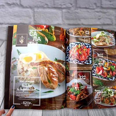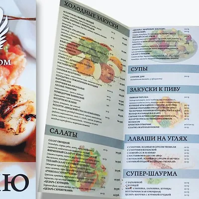 Меню — это часть атмосферы заведения и важный инструмент продаж. Оно должно быть не только красивым, но и удобным, читаемым, долговечным. Печать в типографии позволяет выбрать формат, материалы и отделку под стиль вашего кафе или ресторана, а также обеспечить идеальную цветопередачу блюд на фотографиях.