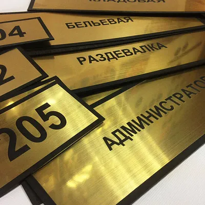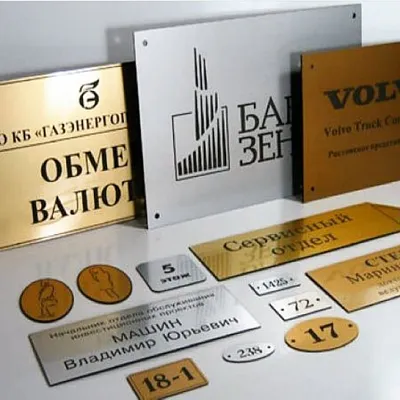 В зависимости от материала и задачи мы применяем: УФ-печать, шелкографию, фрезеровку, гравировку, аппликации из плёнки, лазерную или фрезерную резку. Таблички можно дополнительно покрыть лаком, использовать защитные плёнки или декоративную отделку.