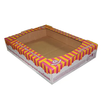 Мы предлагаем своим клиентам профессиональную печать на коробках из разного материала с нанесением на их поверхность логотипа и других элементов фирменного стиля. На нашем сайте вы можете выбрать коробку на любой вкус. К примеру. для кондитерского бизнеса мы бы вам предложили коробку крышка дно с окошком.
