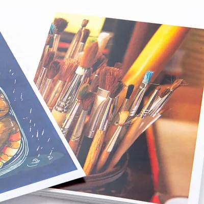 3. Типа материала. Мы можем использовать влагоустойчивую, мелованную, глянцевую, дизайнерскую или крафтовую бумагу. Всё зависит от ваших пожеланий и поставленных задач.