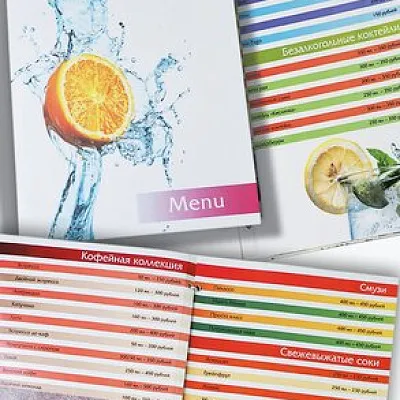 Срок изготовления зависит от формата, тиража и сложности. В среднем — от 2 до 5 рабочих дней. Если меню нужно срочно — скажите об этом менеджеру, подберём экспресс-вариант.
