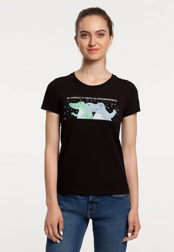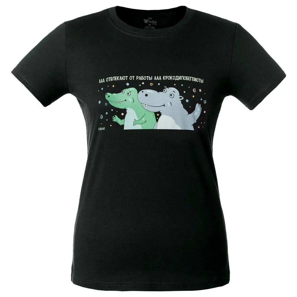 Типография » Футболка женская «Крокодилобегемоты», черная
