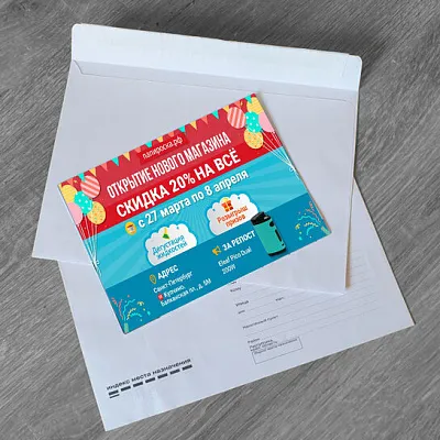 | А6 | А4/3 (20х10 см под «евроконверт») | А5 (20х15 см под «обычный» конверт) | ||||