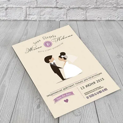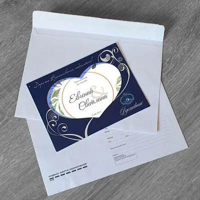Мы изготавливаем пригласительные разного формата и сложности: одно- и двустворчатые, на дизайнерском картоне, с тиснением, лентами, вырубкой, конвертами и индивидуальной персонализацией. Форматы — стандартные (А6, А5) и нестандартные по вашему запросу.