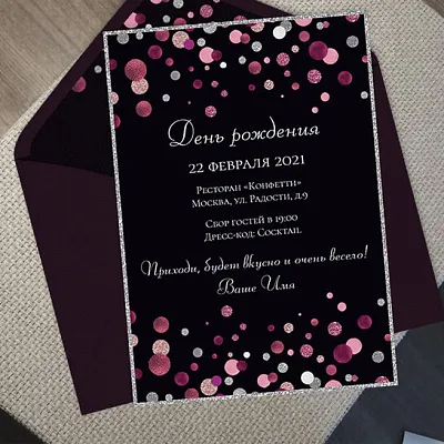Да, вы можете прислать готовый макет или заказать разработку дизайна у нас. Мы оформим пригласительный в едином стиле с мероприятием, с учётом всех ваших пожеланий и особенностей повода.